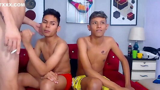 3 Mischievous Dudes Heterosexual boy gets first gay handjob oral pleasure and rimjob! Torrid!!