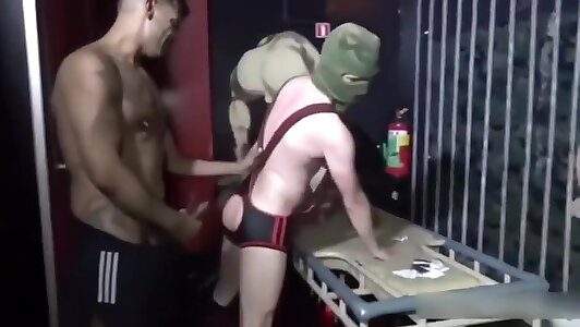 Rectal fuckfest with two muscled boys